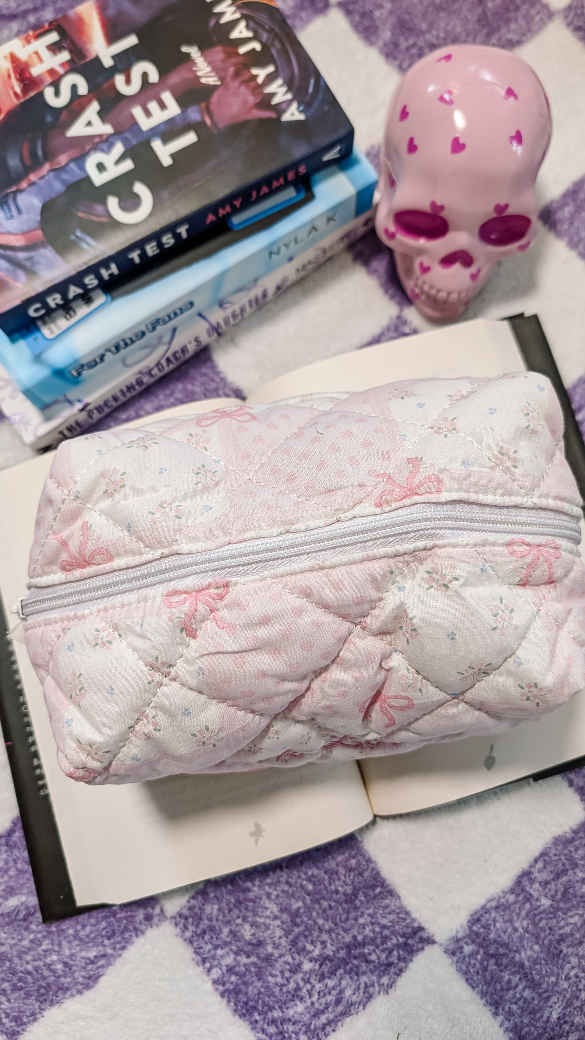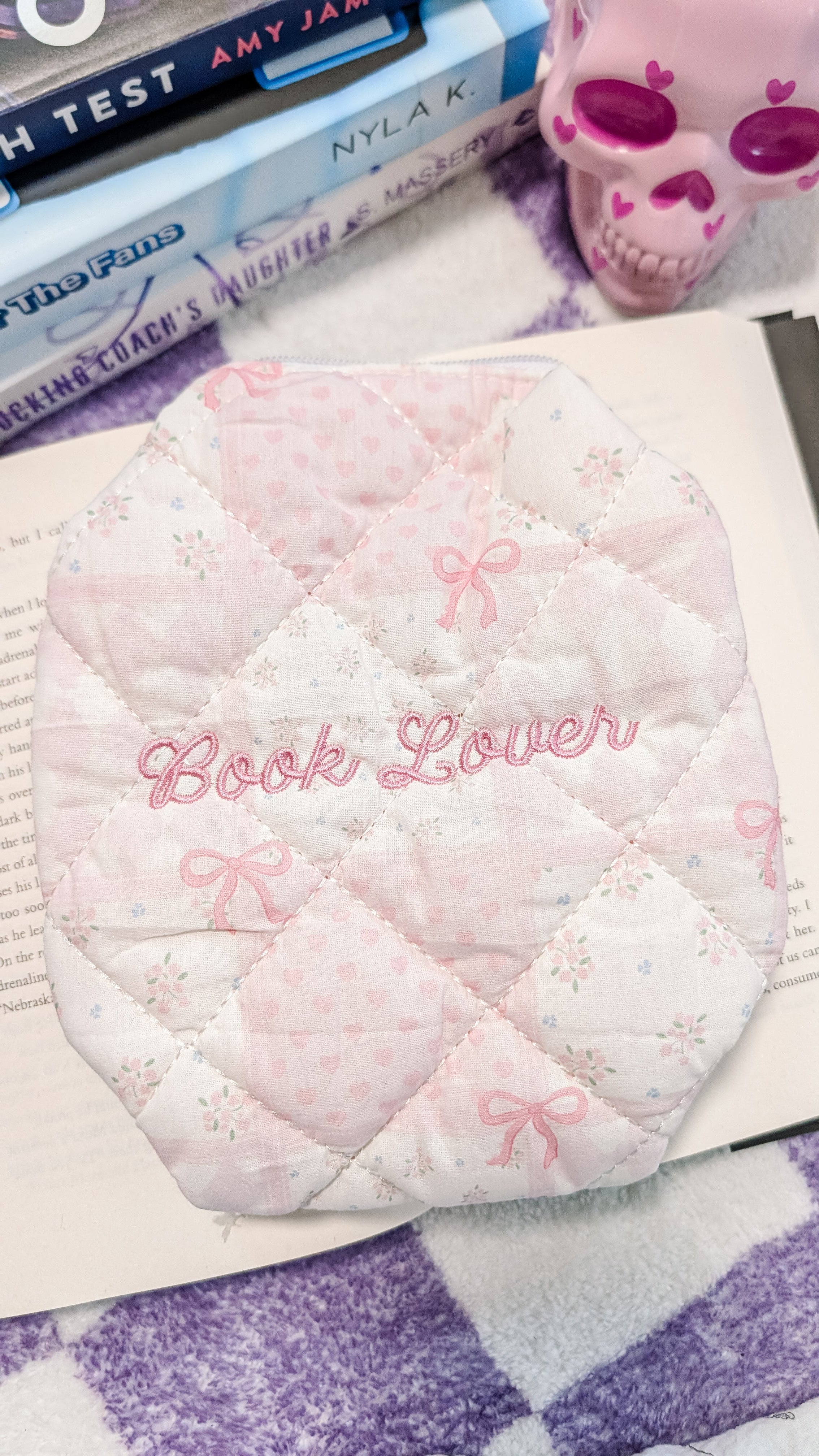 Upgrade your makeup game with this trendy quilted makeup bag which is specifically made for book lovers. With its unique design and durable cotton material, this Book Lover Quilted Cotton Makeup Bag is perfect for carrying all your beauty and/or reading essentials.