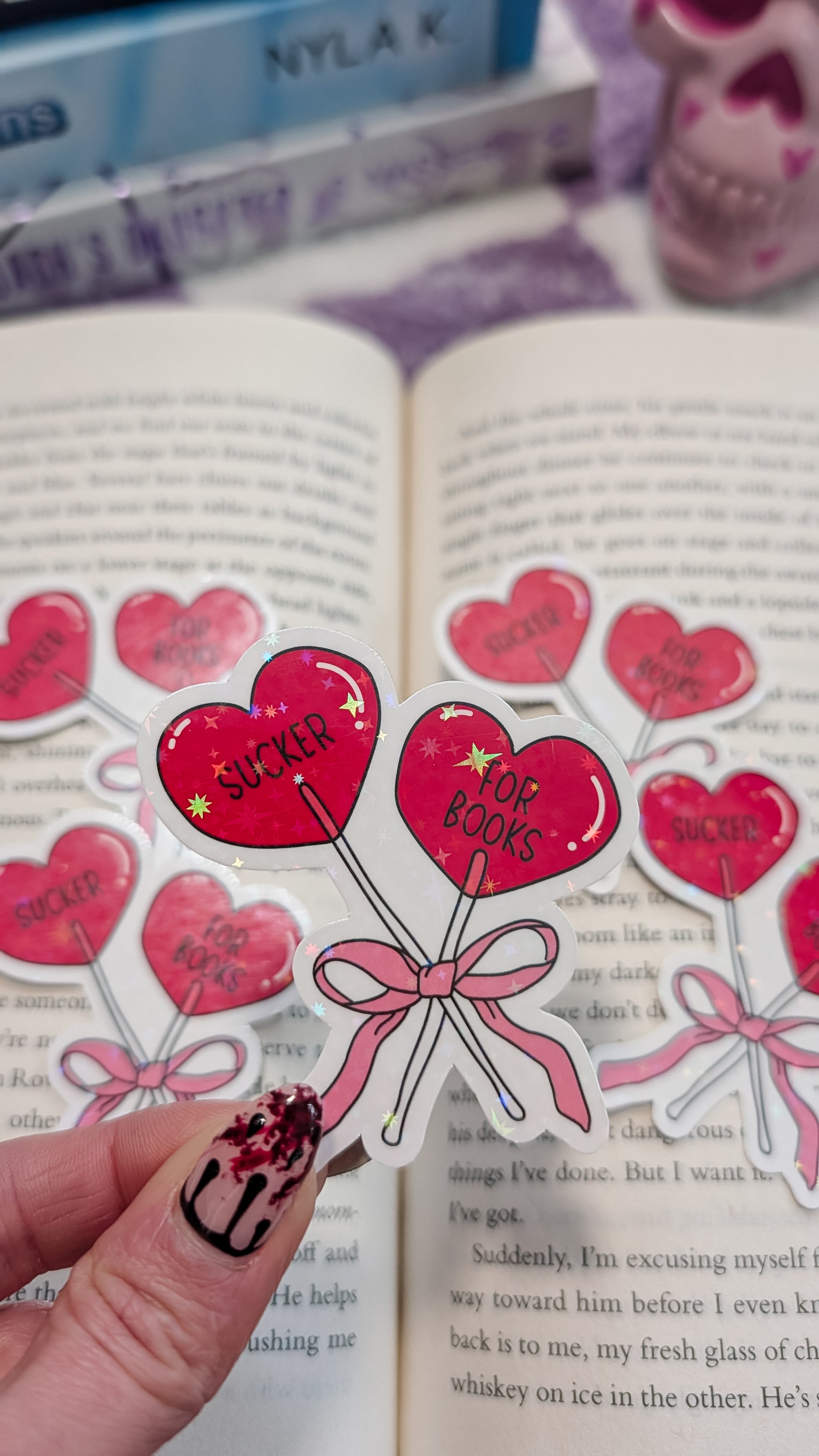 Bookish Valentine's day sticker (holographic)